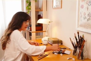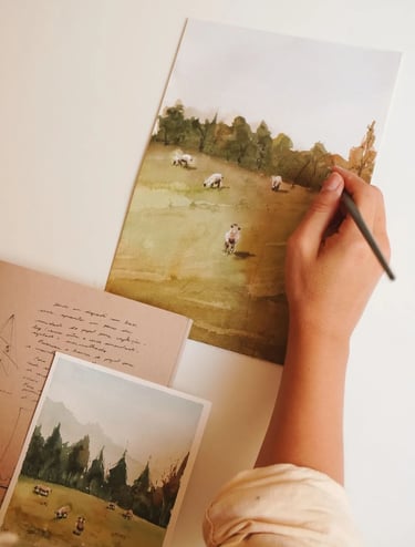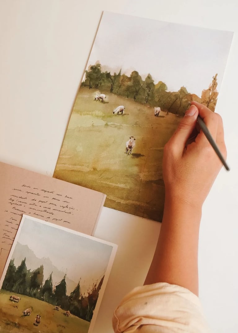 Foi quando conheci a aquarela. O que no começo parecia uma simples pausa no meio da correria, foi, aos poucos, abrindo portas: a arte se revelou o espaço onde eu vi a minha autenticidade florescer, onde pude transformar a criatividade em expressão, a liberdade em poesia e o que era um simples hobby, em propósito de vida.