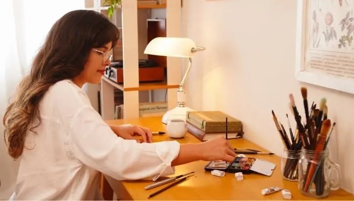 Com alguns itens básicos já é possível fazer suas primeiras pinturas. E se você ainda não tem nada, não se preocupe: no curso você encontra todas as orientações com recomendações claras e acessíveis.